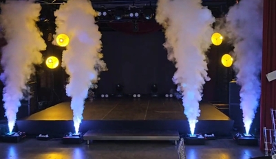 Крио-эффекты — это мощные вертикальные выбросы холодного белого пара, создающие динамичный и эффектный визуальный акцент. Они дают яркий «выстрел» атмосферы в нужный момент и идеально подходят для энергичных выходов, кульминаций программы и танцевальных эпизодов.